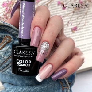 On the previously hardened Claresa hybrid base, apply a thin layer of colored hybrid varnish and harden it in a UV/LED lamp. In order to achieve a satisfactory effect, you can repeat the action. Secure the styling by applying and hardening TOP Claresa.