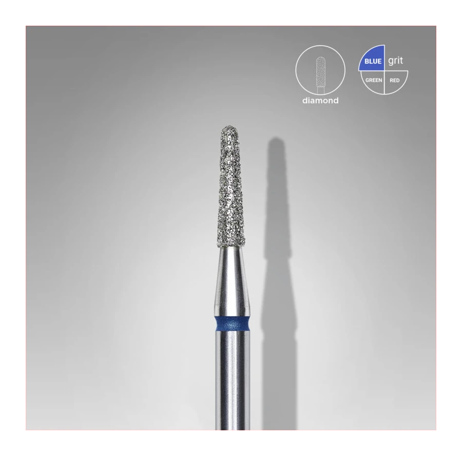 - “Frustum” shape for working with natural and artificial surfaces, shaping the regrown part of the nail plate, polishing the surface.